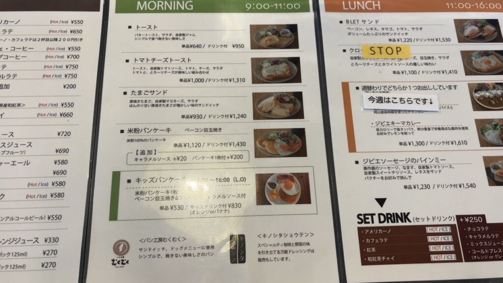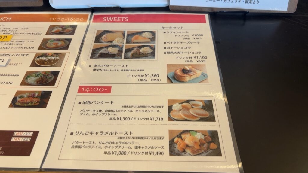 トマトチーズトーストも気になりましたが、今回はずっと気になっていた、厚焼きたまごが使われているたまごサンドと、米粉パンケーキに決定!