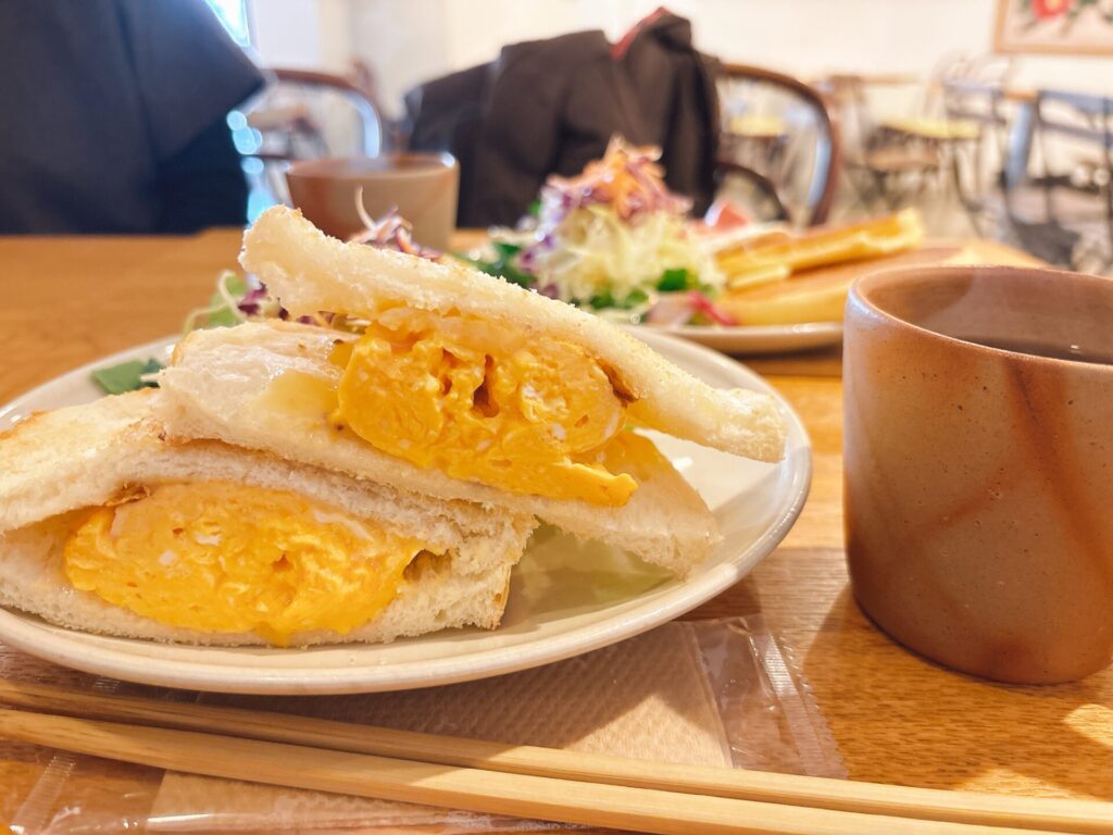 岡山市東区【+1(プラスいち)】玉子サンドと米粉パンケーキが美味しいカフェモーニング!