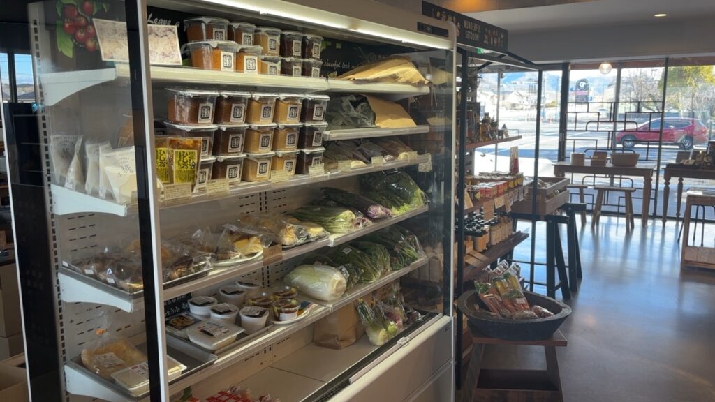 センターキッチンのような配置になっていて、座席と小物やこだわりの食材の売り場に分かれています。