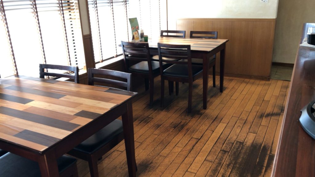 カウンター席の他は、4人テーブルが4つでシンプルな配置になっています。