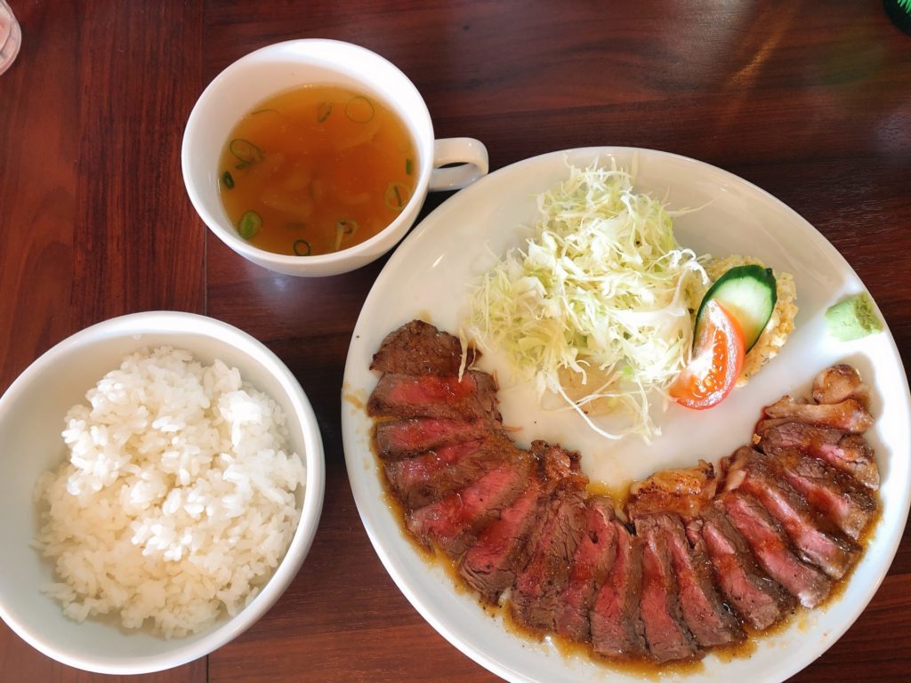 ステーキを半分くらい食べた頃にご飯が無くなり、お代わりしました。