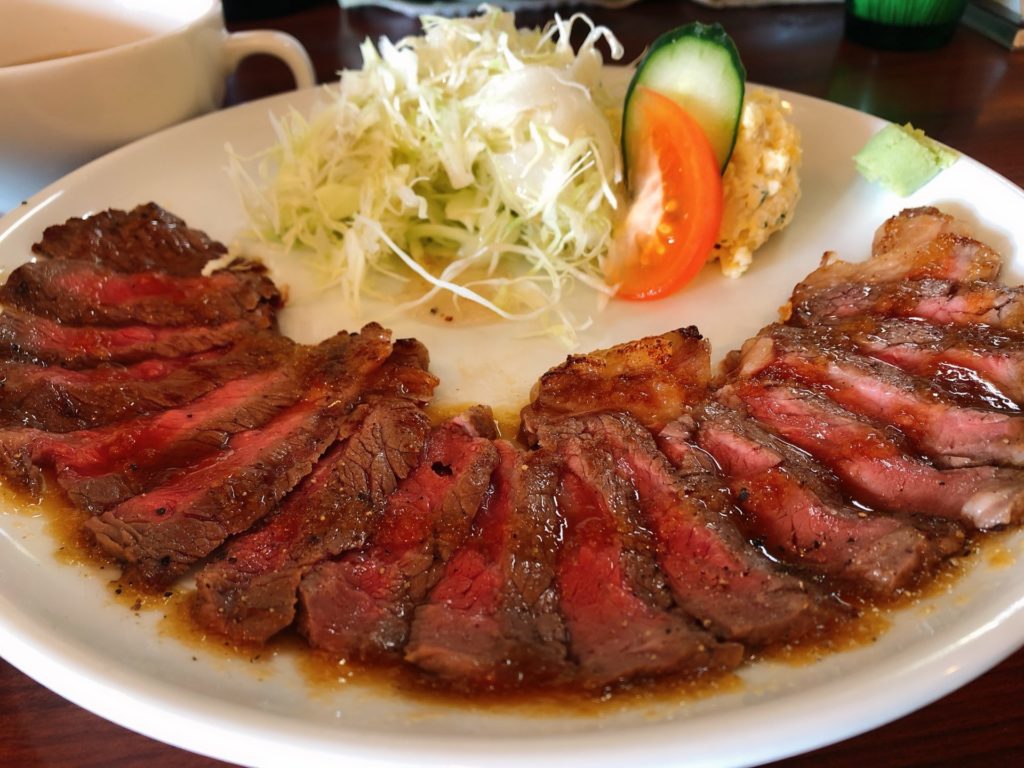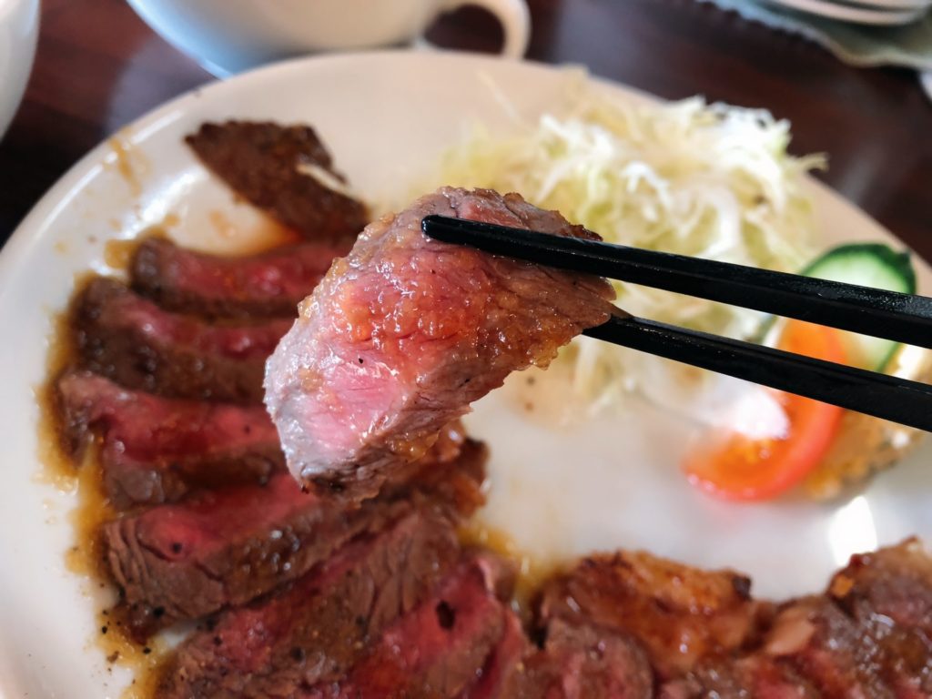 ミニッツステーキの名前は、1分で出来る(火を通す?)っていうような意味らしいですが(店員さんに確認)、火加減の調整が抜群ですね。