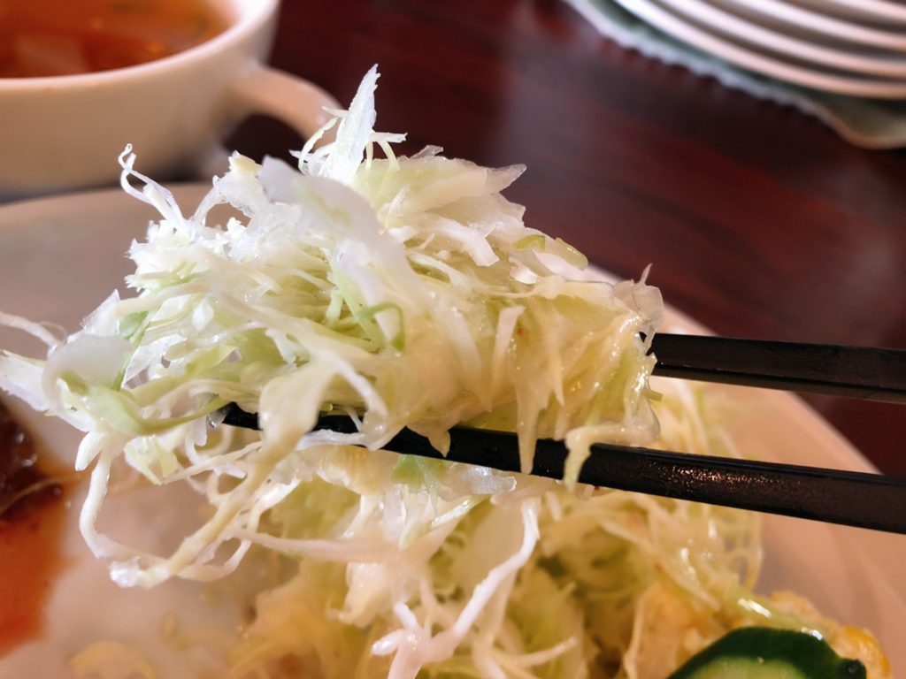 添え付けのサラダ、キャベツの千切りもシャキシャキです。