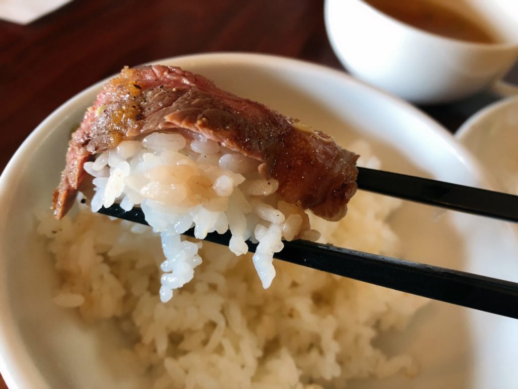 ご飯が熱々なので、折角のレア加減がどうなのかなとも思いましたが、これだけご飯に合うステーキならやってみたいですよね~。