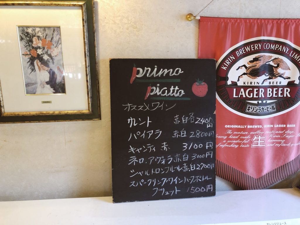 ワインも好きなので、せっかくのイタリアンのディナー、選択肢が少し欲しいなと何気に振り向くと、壁にワインのメニューがしっかりとあるじゃないですか!!