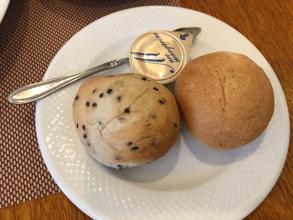 このメインディッシュを食べ始めたときに、パンも来ました。