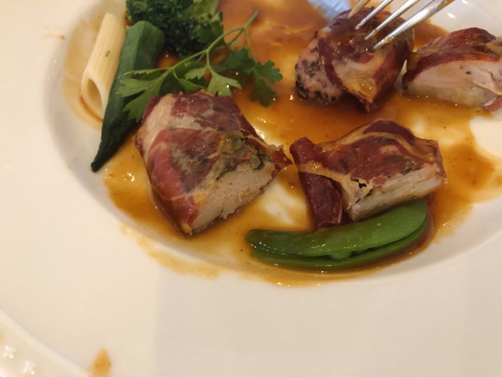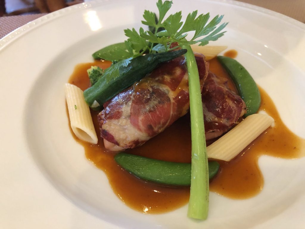 次が、メインディッシュの「ホロホロ鶏のサルティンボッカ」です。
