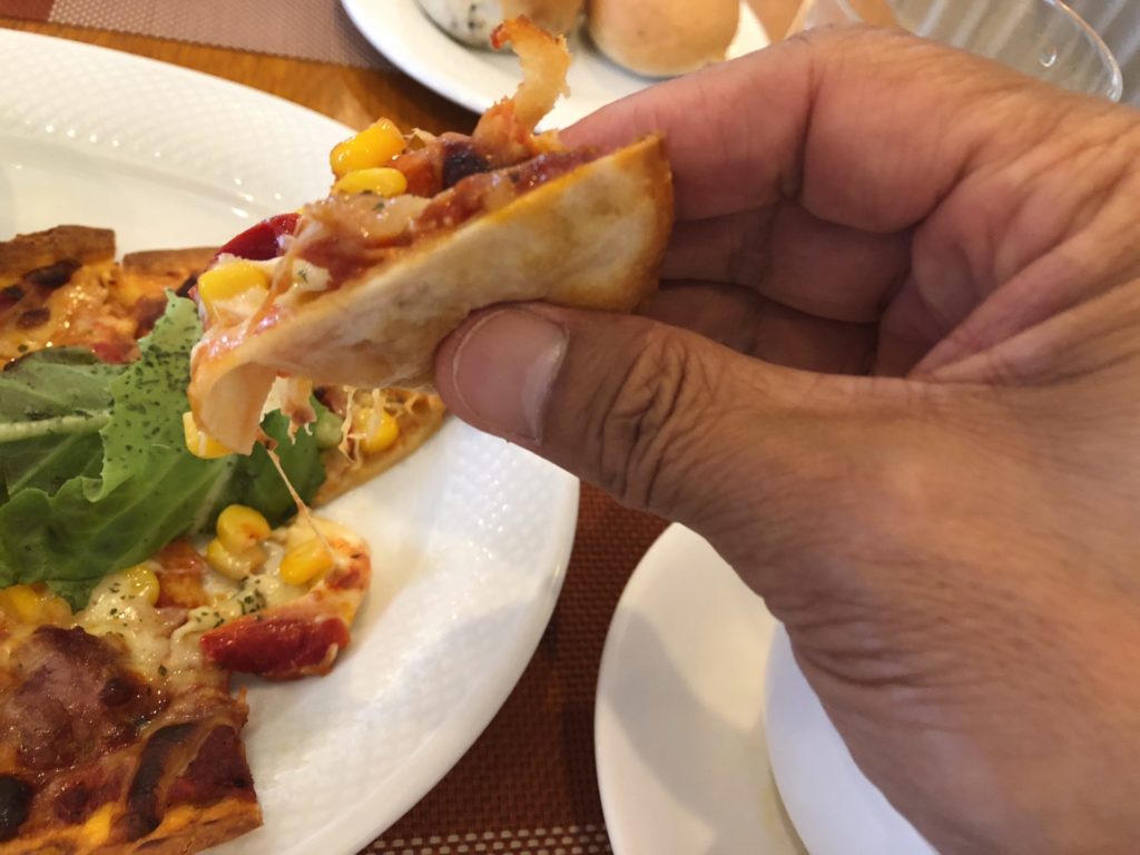 少し食べたところで、次は隣のピザを。