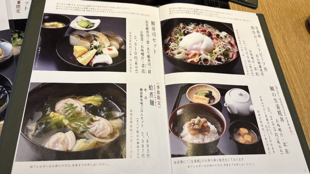 テーブルに着座して、メニューを拝見。