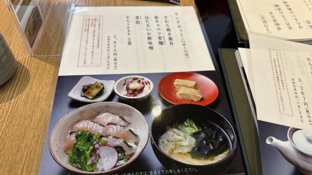 和牛ローストビーフ丼・鯛の生姜糀丼・鯛づくしセット・春野菜天丼等迷うこと必至のメニューの中から決めたのは!?