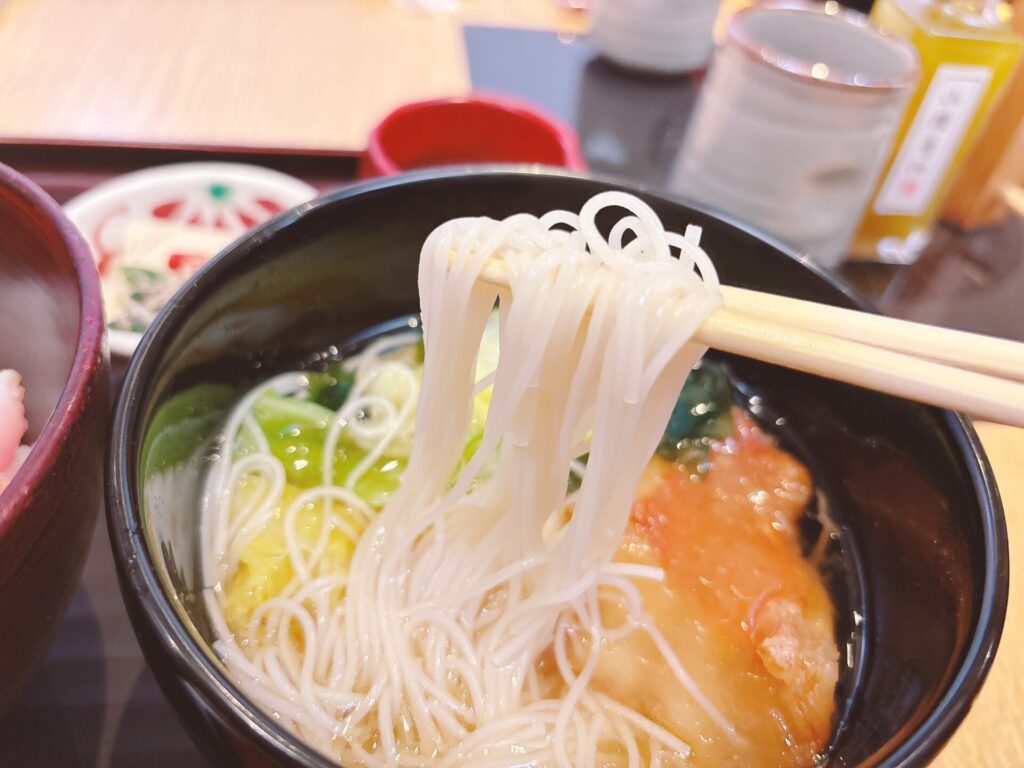炙り金目鯛・いか・たらこ丼が主役と思いきや、繊細な出汁の美味しさが詰まった煮麺(にゅうめん)も負けてない!