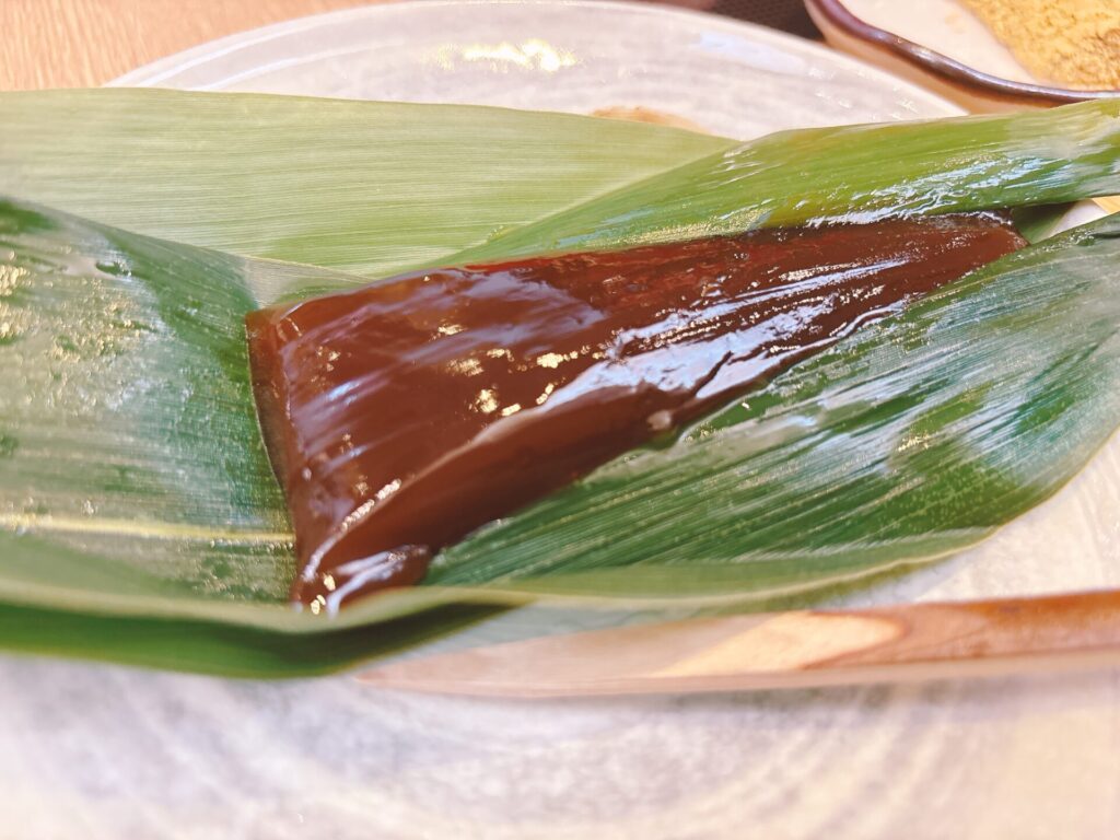見た目は羊かんのようにも見えますが、どちらかというと、わらび餅に近い感じかな。