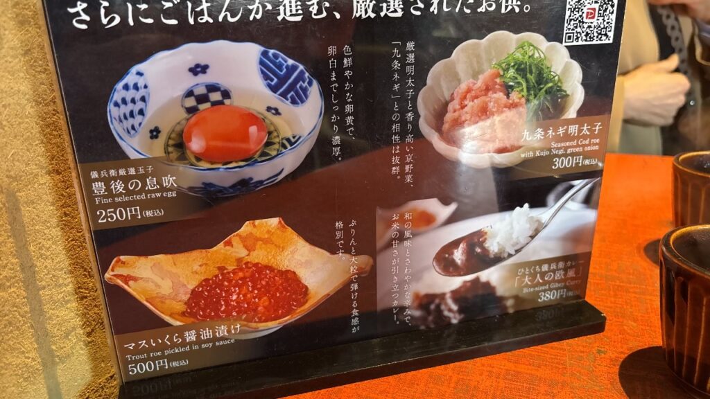 全部をお供にしたいところですが、儀兵衛厳選玉子「豊後の息吹」250円を追加でお願いした次第。