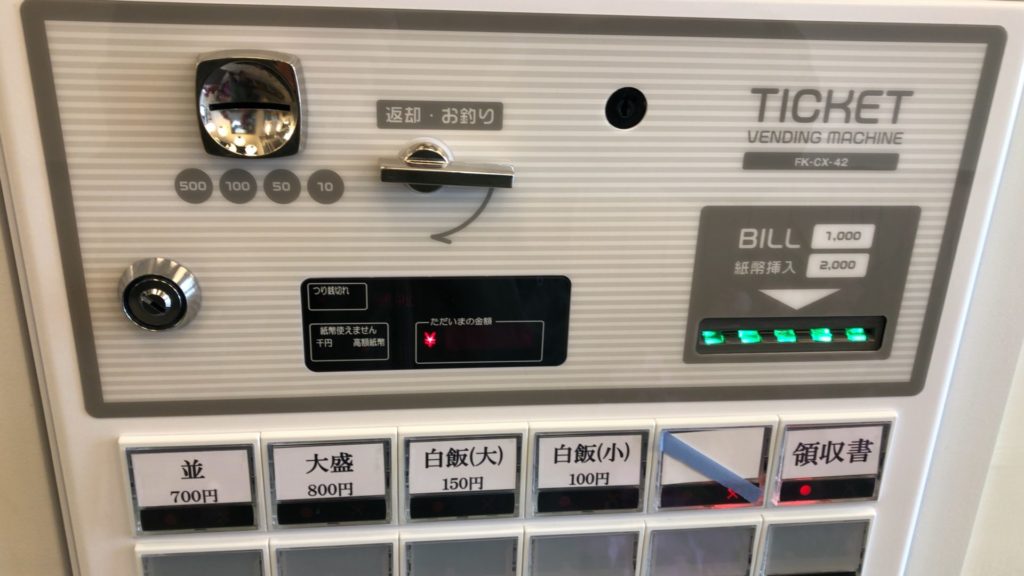 ドアを開けて入店すると、初めての人はそのまま奥の席の方へ進まれますが、入り口入ってすぐのところに券売機があるので、まず券を買って下さいね。