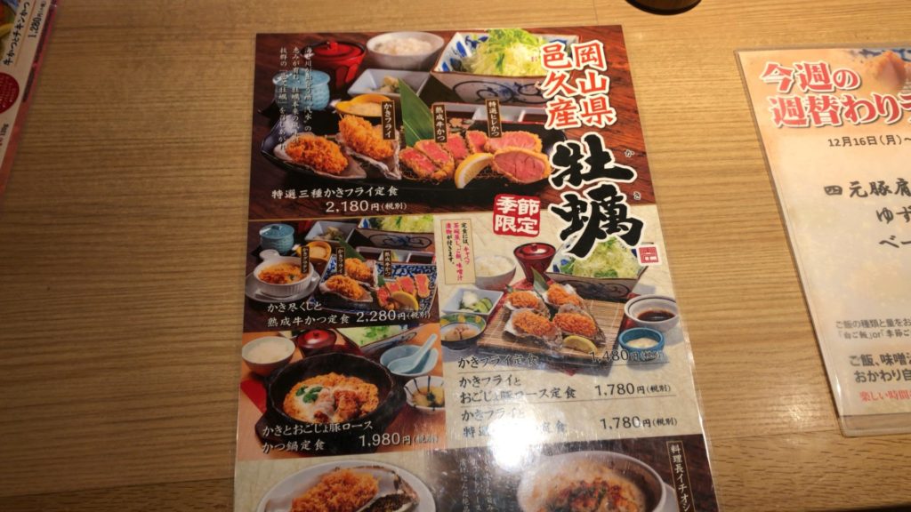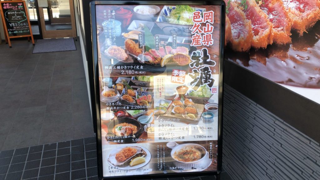 そして季節限定の岡山県邑久産の牡蠣のメニュー案内。