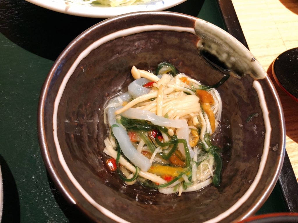酢のものなんですが、なめこ、エノキ、イカにワカメ等がとても美味しかった。