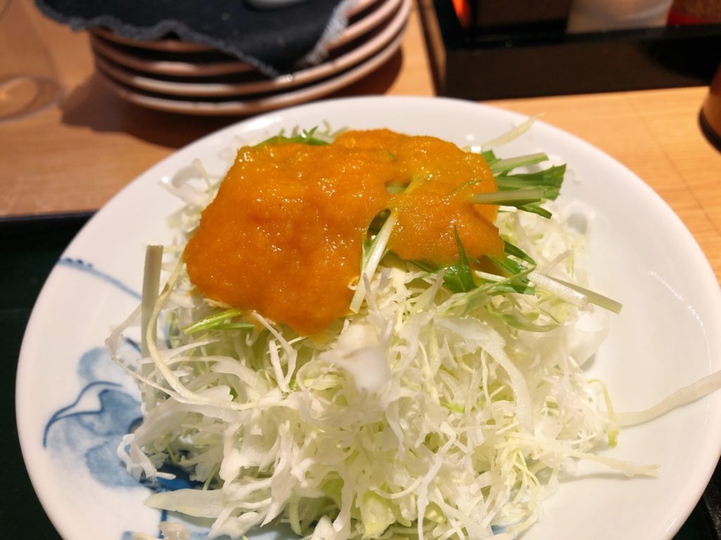 おかわり自由のキャベツには、置いてあるシソのドレッシングじゃなく、生野菜ドレッシングが美味しかったですね。