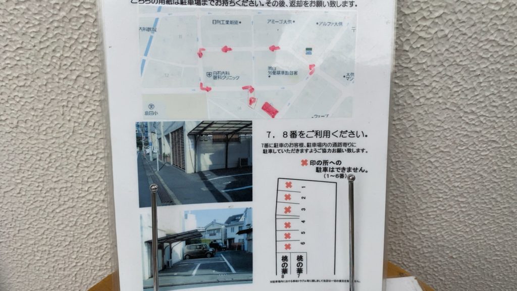 こちらは、お店の前に地図等が入った案内がありますので、確認してから行かれたらいいと思います。