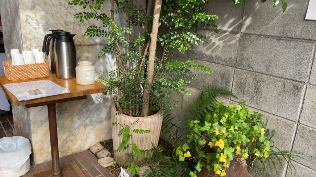 外で待つ人のためにお茶が準備されていました。