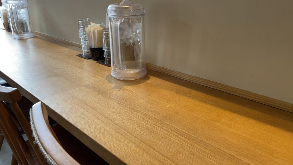 端の方がよく見えませんでしたが、カウンターが12か13席あったように思います。