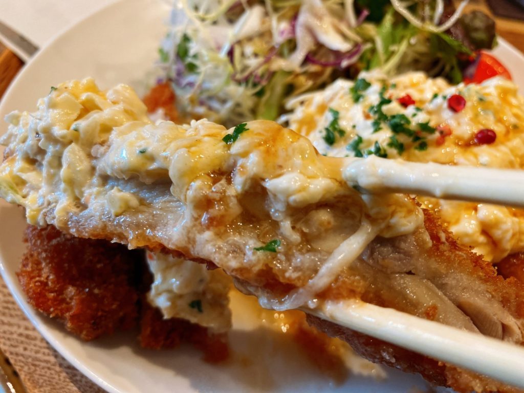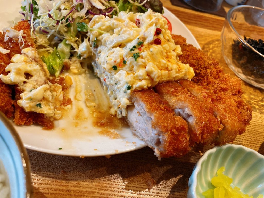 タルタルソースがとても美味しく、タルタル単体でもおかずになりそうなくらいですが、チキンに乗せるとこれがまた止まらない美味しさ。