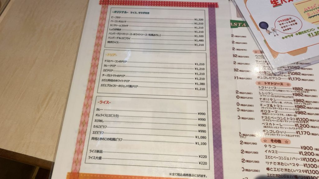 東区大多羅駅近くでイタリアンランチが楽しめるペスカトーレのメニューは、パスタランチとごはんランチが人気!