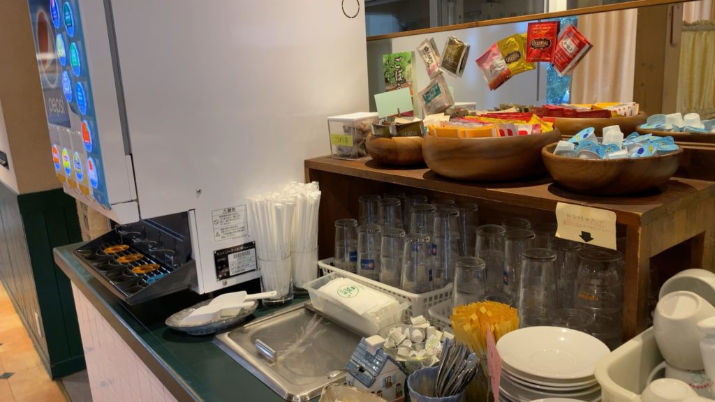 注文して5分経たずに、パスタとパンが順番に来て、ドリンクバーの説明を受けました。