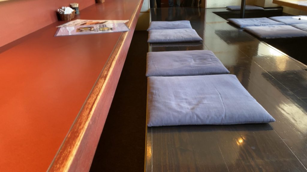 掘りごたつ式のカウンターには6枚の座布団が敷かれていましたが、詰めると10人くらいは座れそうな広さ。