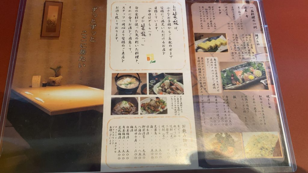 料理内容も和食に洋食、中華等も入った、創作料理と言ってもいいと思える内容のお店。