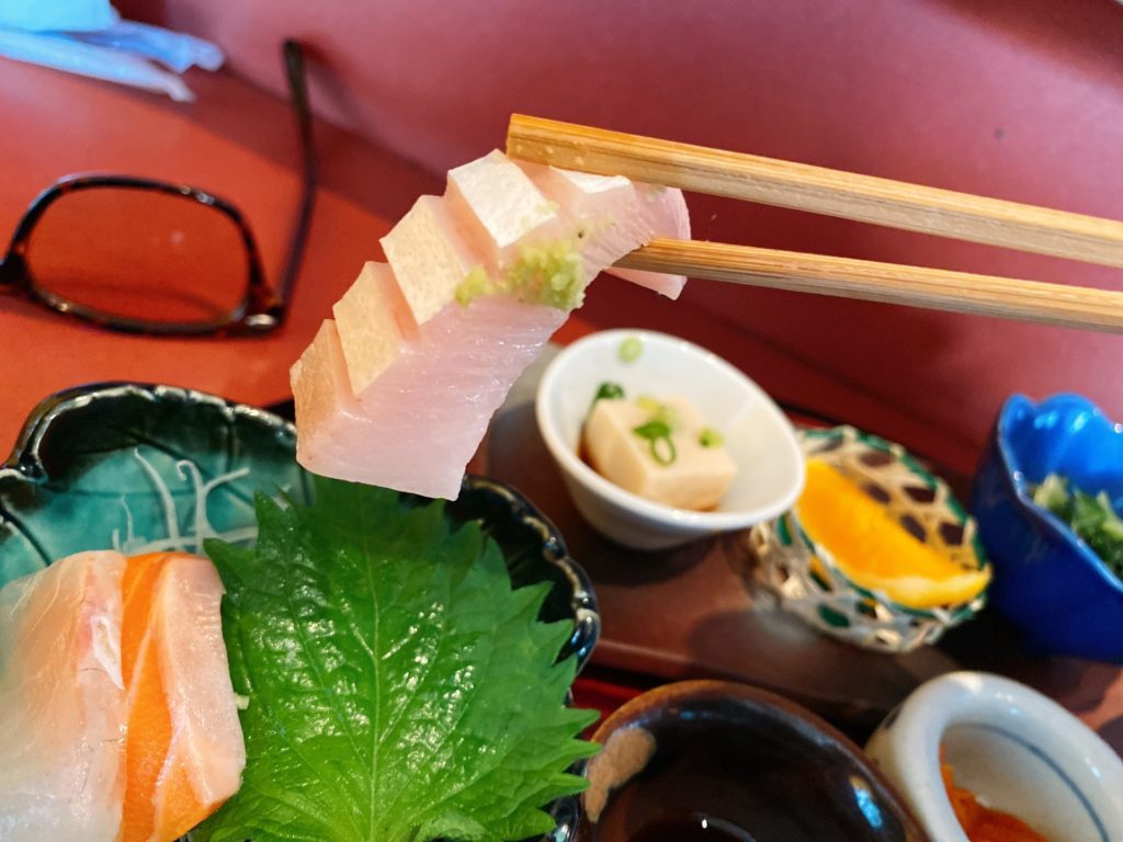 熱々の麻婆なすから頂きたいものの、やはり刺身から頂きます。