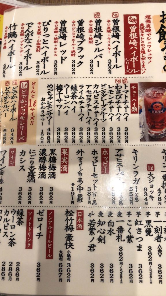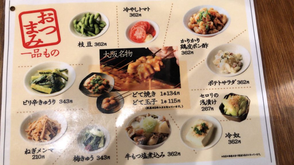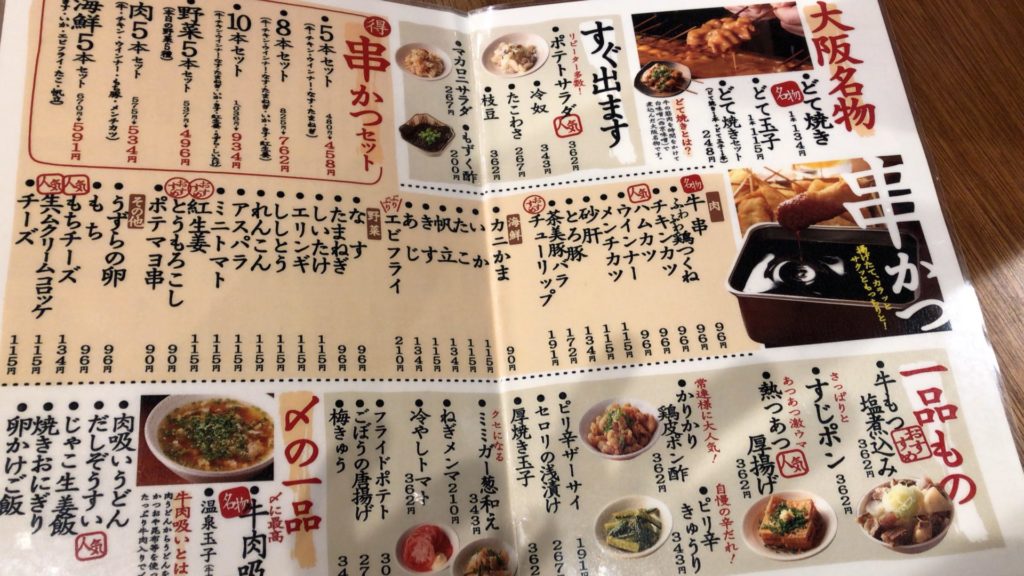 で、串カツや飲み物等の、他のメニューはというと・・・