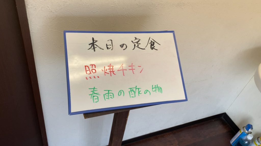扉を開けてすぐ店内かと思ったら、風除室になっていて「本日の定食」のメニューがポツンとありました。