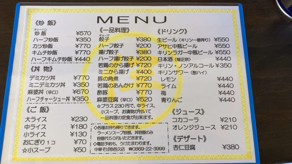 ハーフ餃子に目を奪われつつ、またメニューを表にして、ラーメンにミニチャーシュー丼の付いた、チャーシュー丼セットに決定しました。