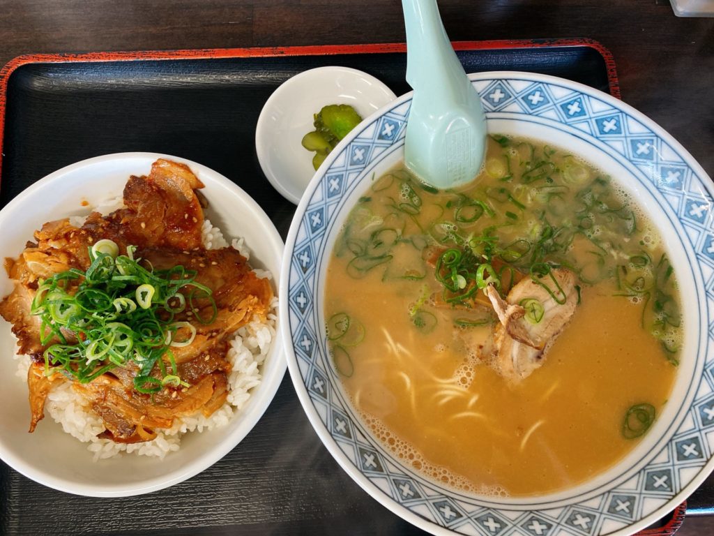 ラーメンも鶏ガラ塩ラーメンと迷ったうえで普通の豚骨にして、セットも最後まで炒飯と喧嘩をしながらチャーシュー丼に軍配が上がりました。