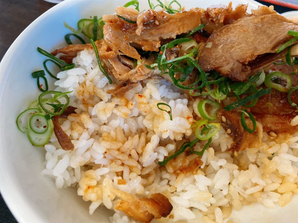 さて、ラーメンを食べている途中でもガツガツいってたんですが、ミニチャーシュー丼の味も抜群です。