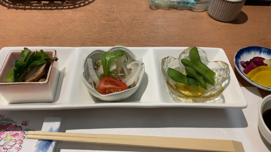 私たちは2,500円のミニ懐石を予約しましたが、2,000円との違いは、タコ飯が付くかどうかとなります。