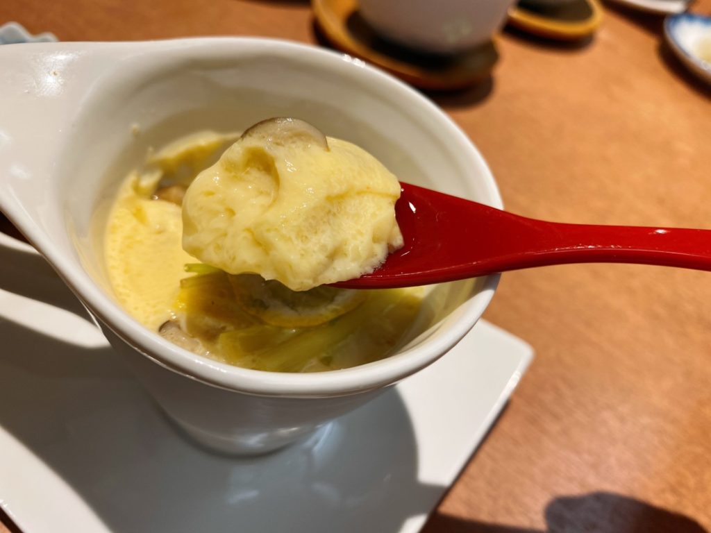 黄ニラ入りの茶碗蒸しで、柚子の風味がとてもいいです。