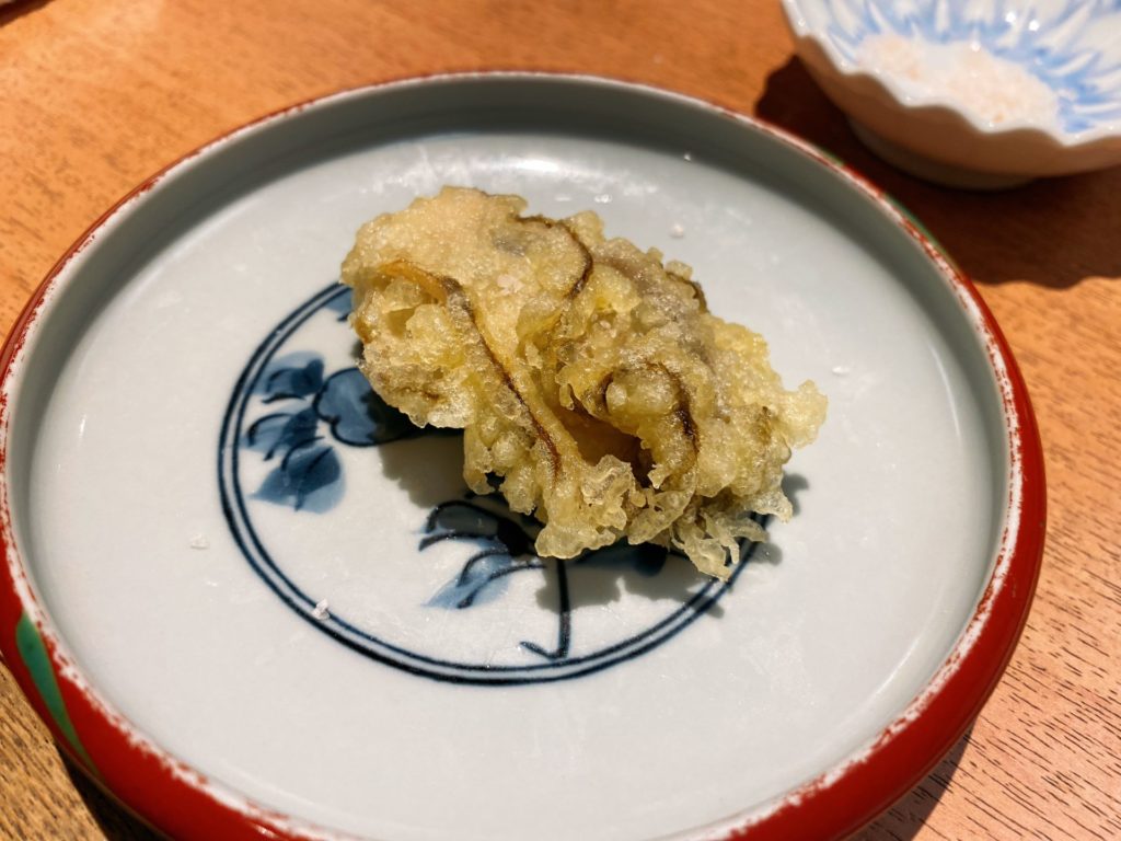 岩塩が出ていましたが、少し舐めてみても甘みがあって、天ぷらに合う岩塩でした。