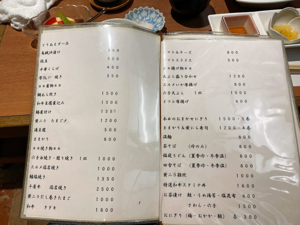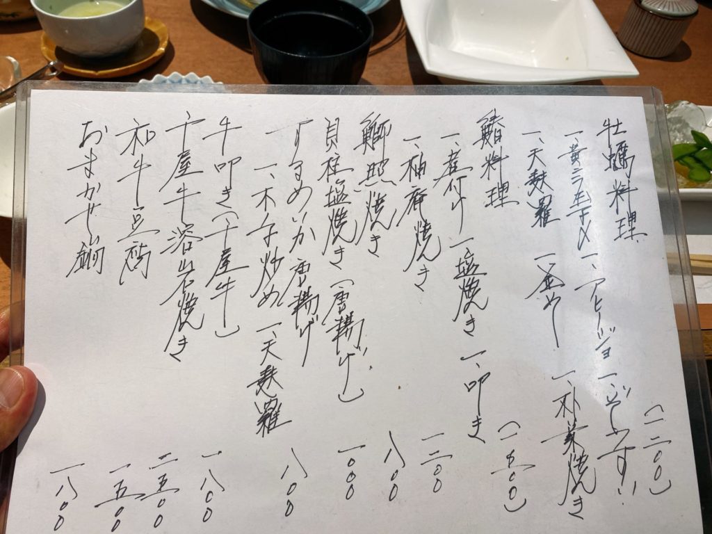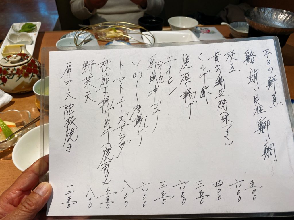 先付け等の料理は準備されていますが、夜のメニューを見てみたいと思います。