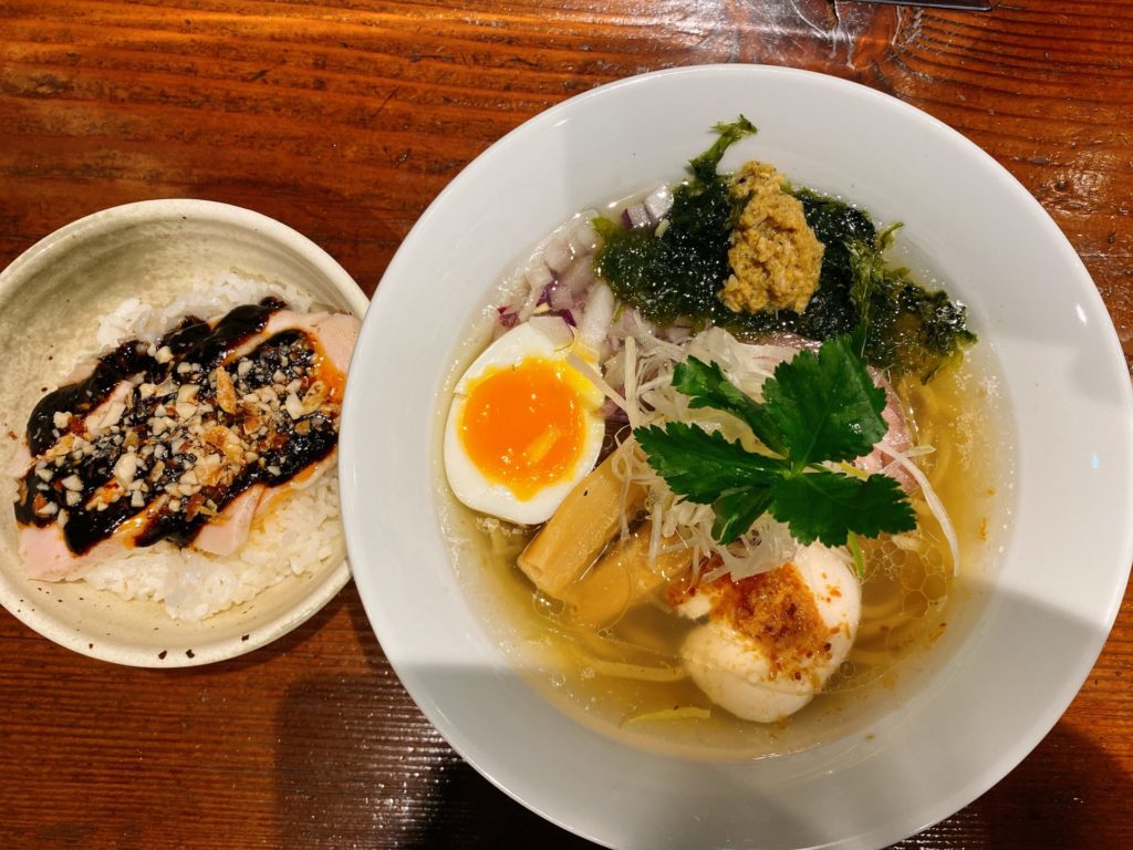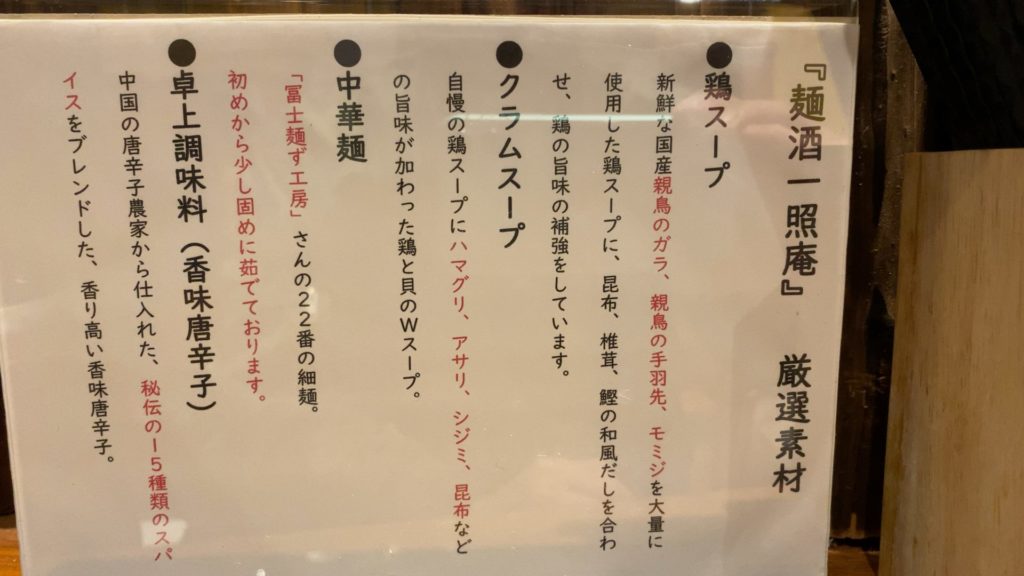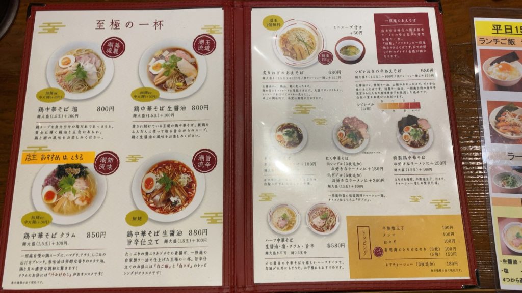 麺酒 一照庵を初訪問 鶏中華そばクラムとよだれ鶏めしを注文するも、生醤油や塩もかなり美味しそう