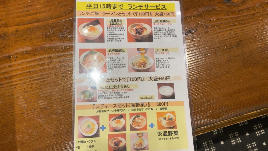 よだれ鶏めしは、ちょっと味が濃いのでこのラーメンを食べるときは、十分にラーメンの旨味を味わってからの方がいいと思います。
