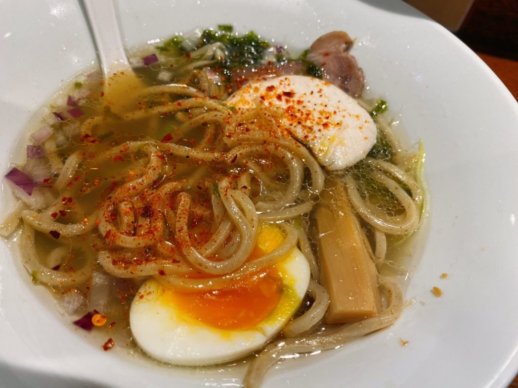 一照庵の鶏中華そばクラムの、鶏スープと貝の出汁の旨さは本物!初めて体験する味ながらもマジでヤバイ美味しさで、麺との相性もバッチリ!