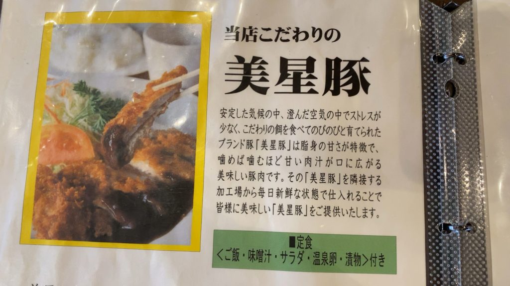 お食事処 美星の郷のメニューにある「美星豚」を頂きたく、味噌カツソースの美星豚のとんかつ定食をオーダー