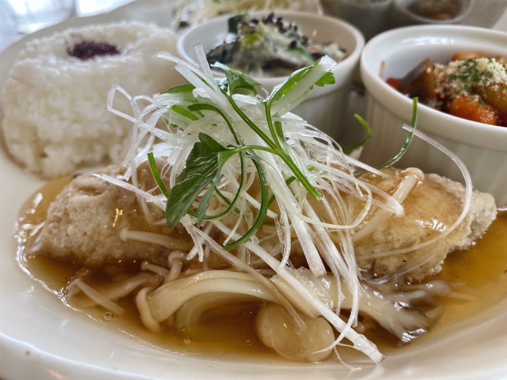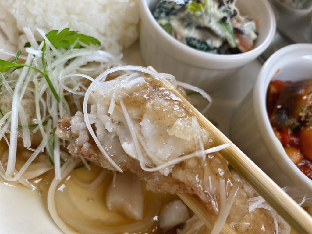ワンプレートゆえ、ドレッシングや白身のあんかけソースがごはんと混ざったりしましたが、それはそれで美味しかったです!