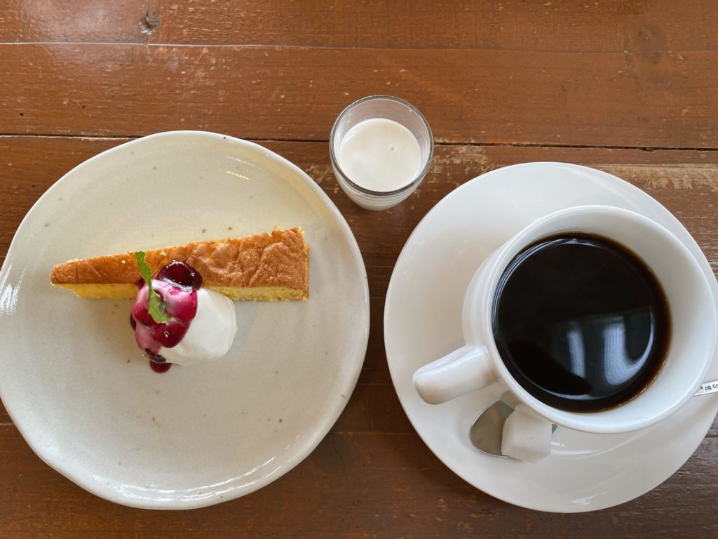 ベリーソースのクリームにケーキ、そしてコーヒーを本当にゆっくり楽しませて頂けました。