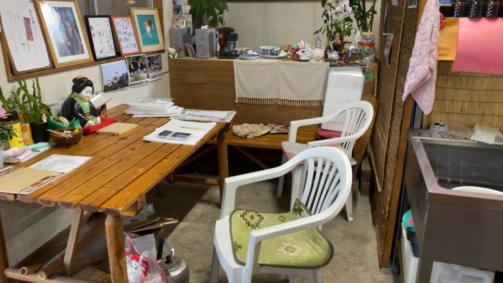 そしてもう一つのテーブルですが、お客さんが座ることを前提とはしてない感じで、趣がありますよね~。