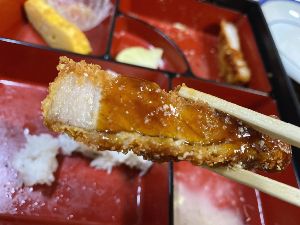 そして12時15分、とんかつ弁当が運ばれてきました。