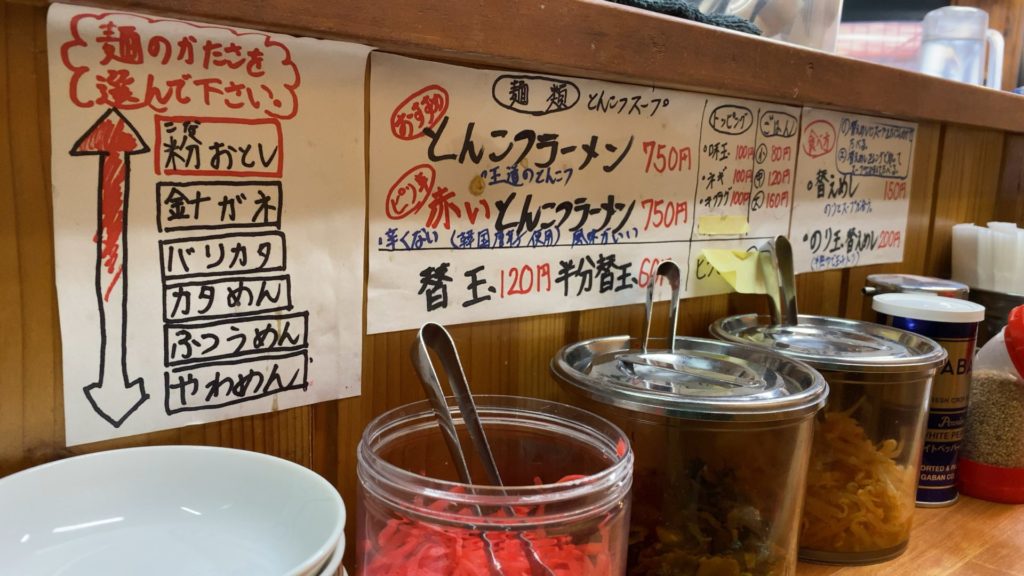 岡山駅からも近い県民局向かいの山下商店、メニューはとんこつラーメンと、赤いとんこつらーめん!替玉もいいけど替えメシをオススメ!!