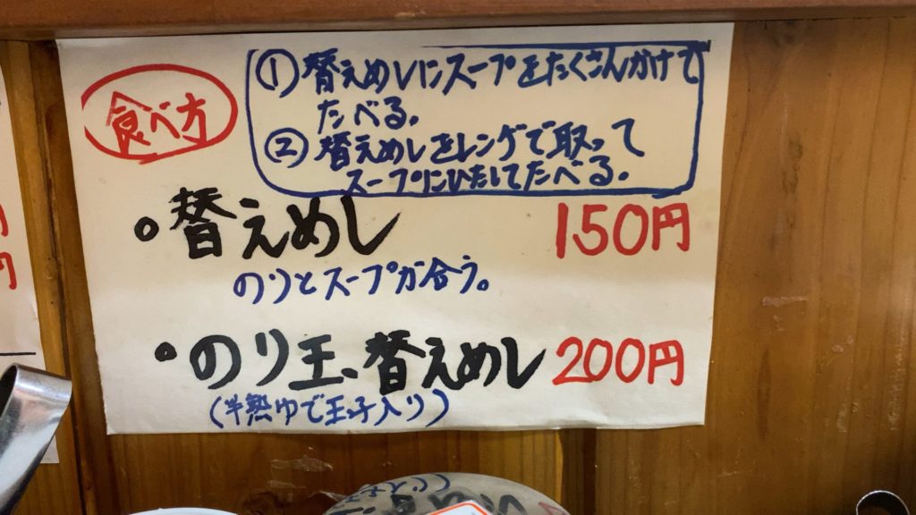 何でもっと早く来れなかったんだろうってう自責の念が沸き上がりつつも、麺も食べ終えて「替えめし」の登場です。