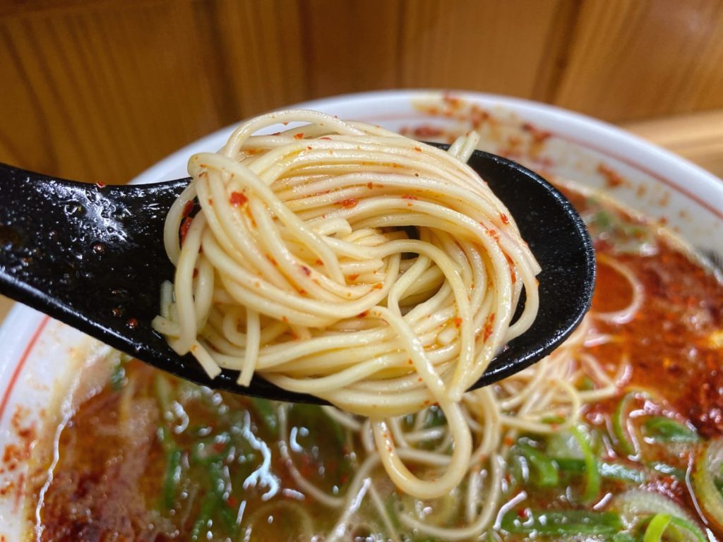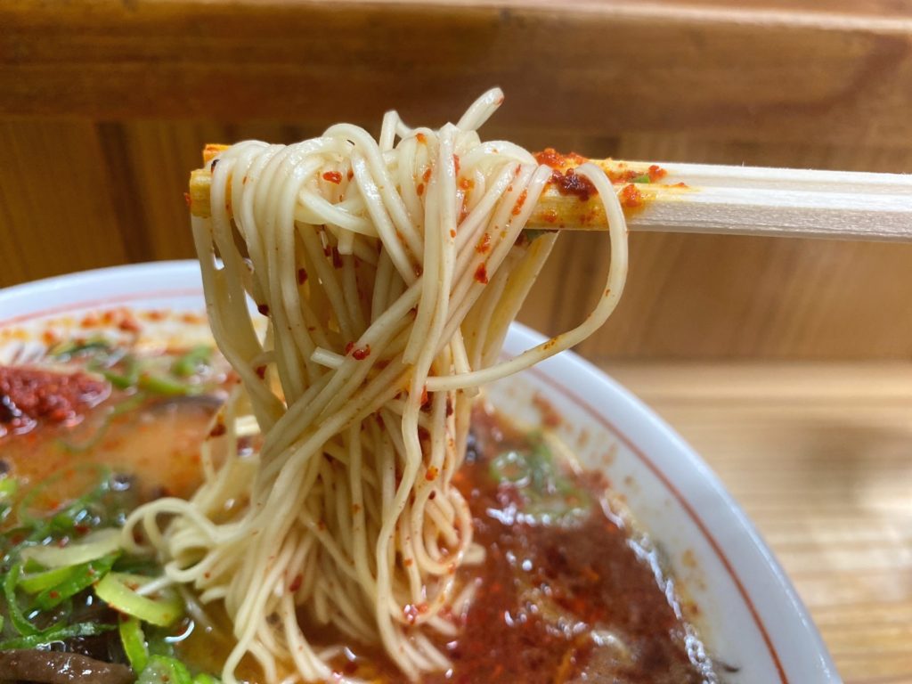 もちろんスープは濃いとんこつですが、この極細のストレート麺、硬めが良かったのかスープの絡み具合と麺の噛み心地がベストマッチ!